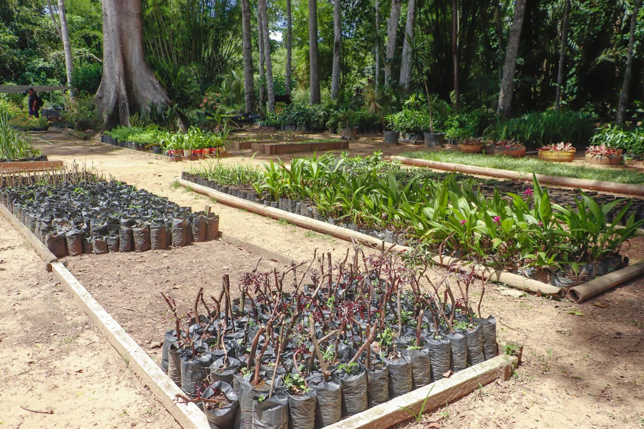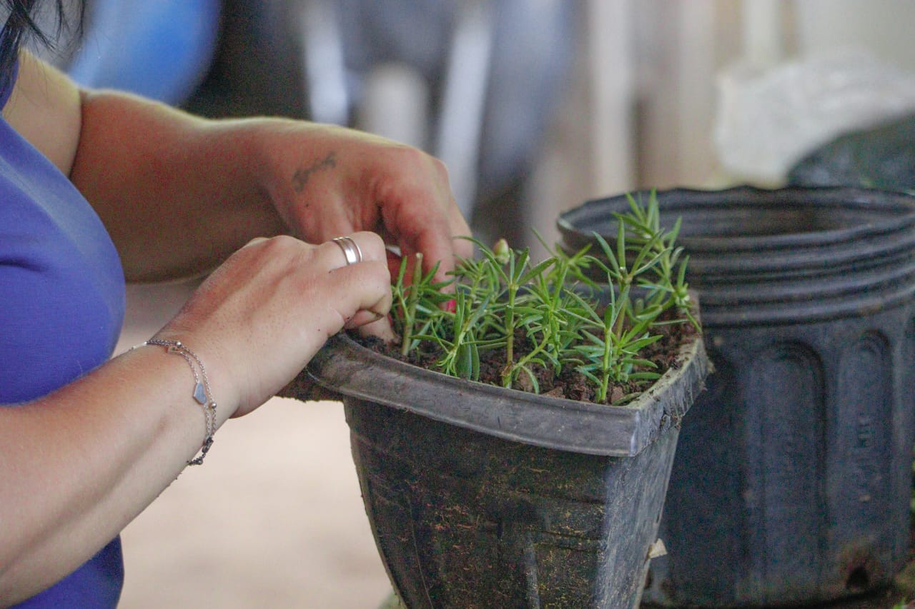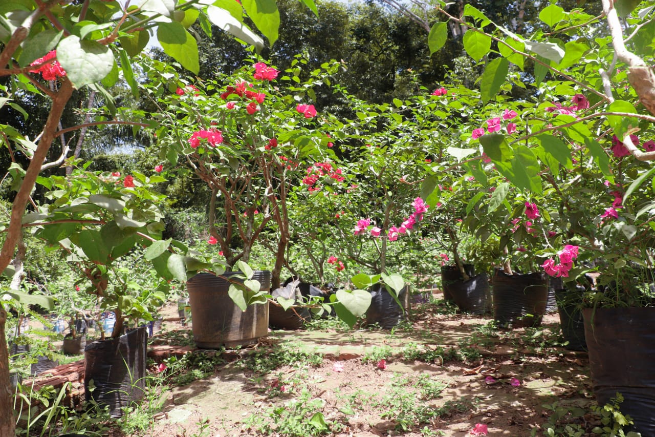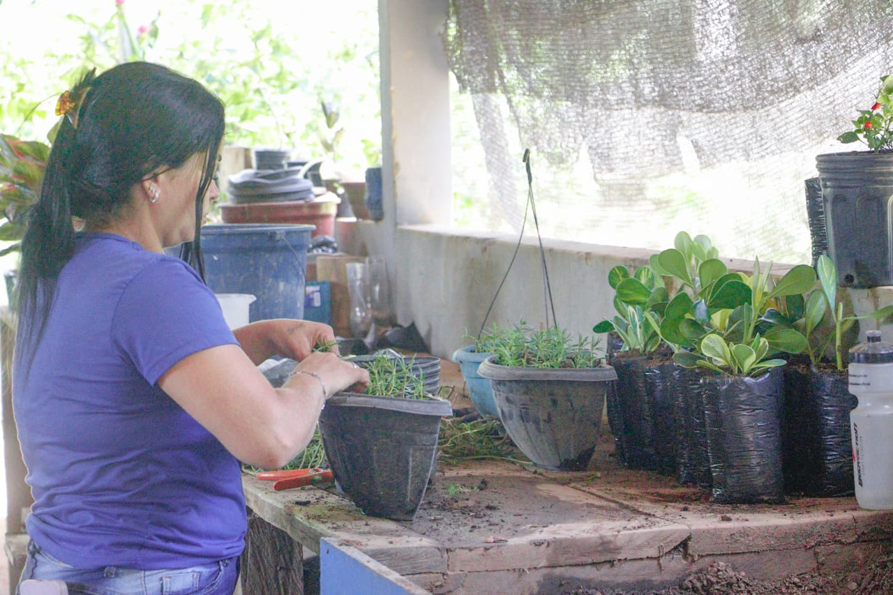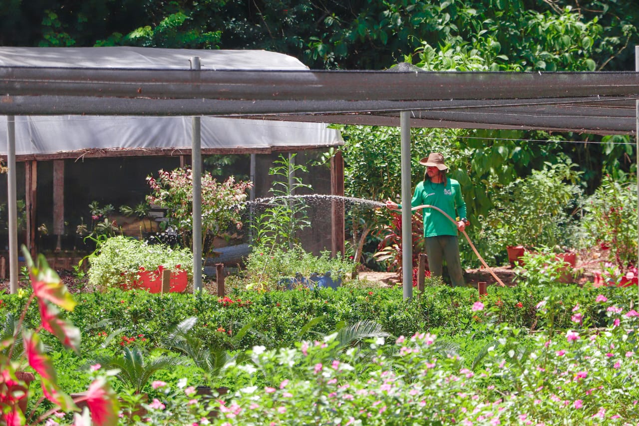 “Todas as ações de paisagismo realizadas pela prefeitura utilizam exclusivamente mudas cultivadas no próprio viveiro”, destacou Flaviane. (Foto: Marcos Araújo/Secom)