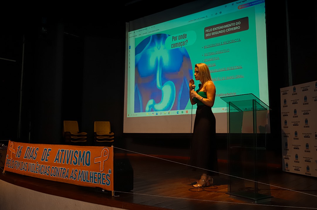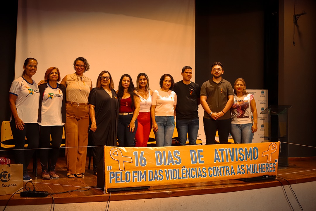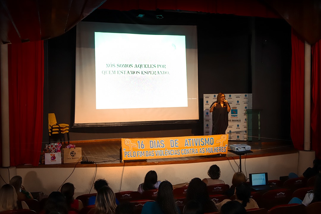 A Prefeitura de Rio Branco, por meio da Secretaria Municipal de Saúde, realizou nesta quinta-feira (27), uma programação especial dos “16 Dias de Ativismo pelo Fim da Violência contra as Mulheres”, no Teatro Hélio Melo. O encontro reuniu agentes de combate às endemias, profissionais da saúde e convidadas para discutir prevenção, acolhimento e os diferentes tipos de violência de gênero.