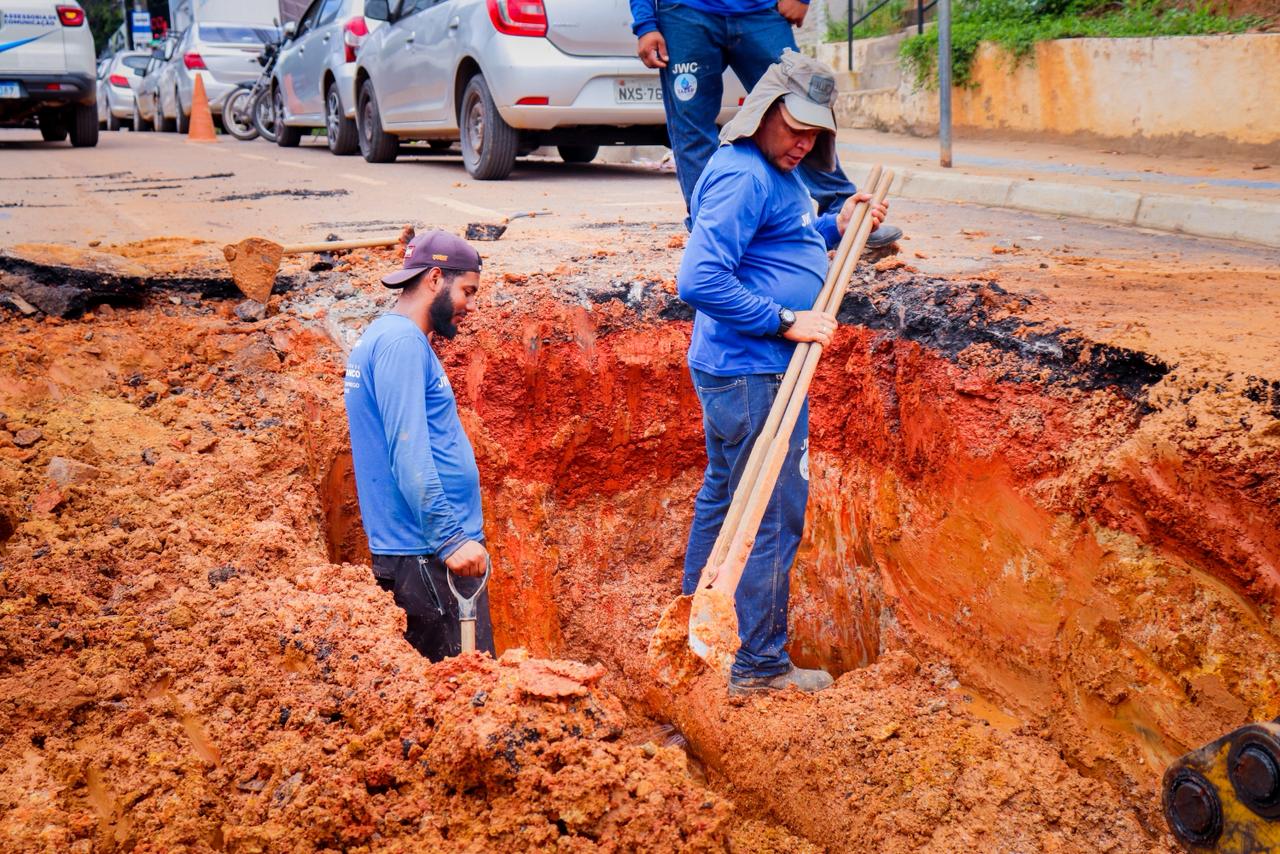 “O serviço tem como objetivo não apenas corrigir o vazamento atual, mas também melhorar a eficiência e a qualidade do fornecimento de água para os moradores da região”, afirmou Jailson. (Foto: Vitória Souza/Secom)