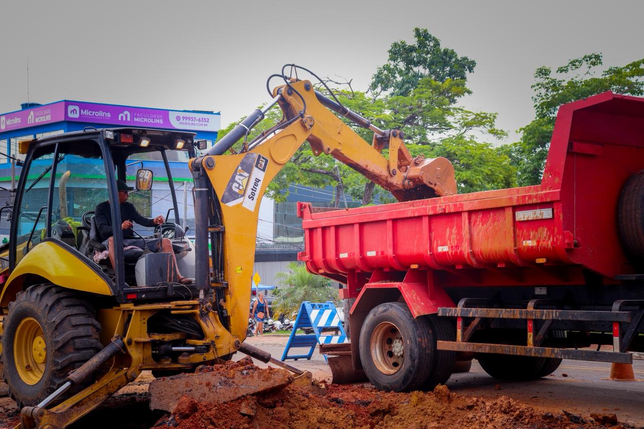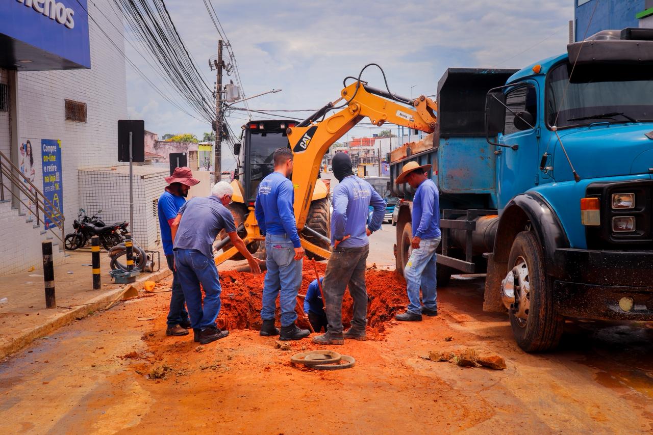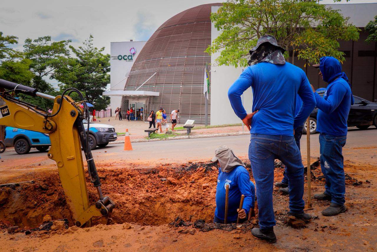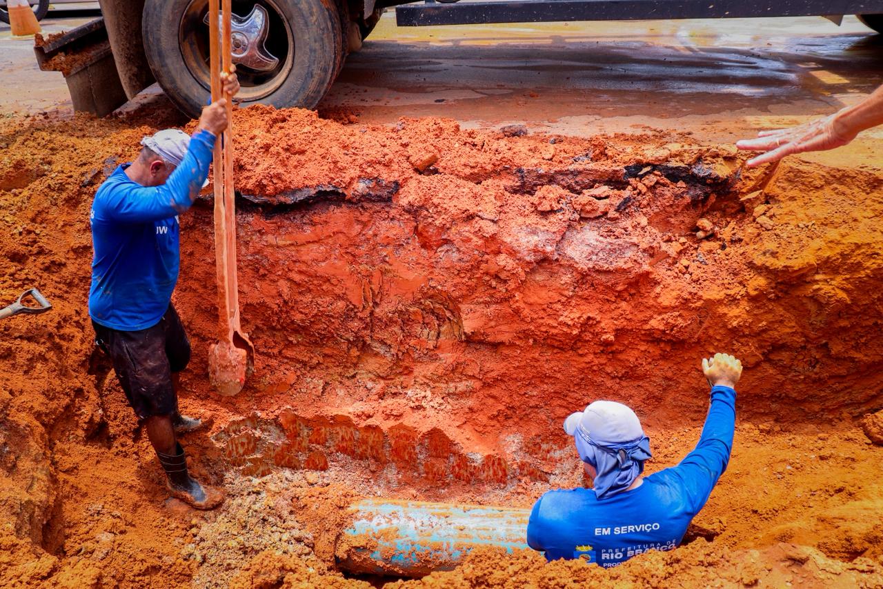 O cano em questão faz parte da rede central de abastecimento de água da cidade, que atende diversas áreas da capital. (Foto: Vitória Souza/Secom)