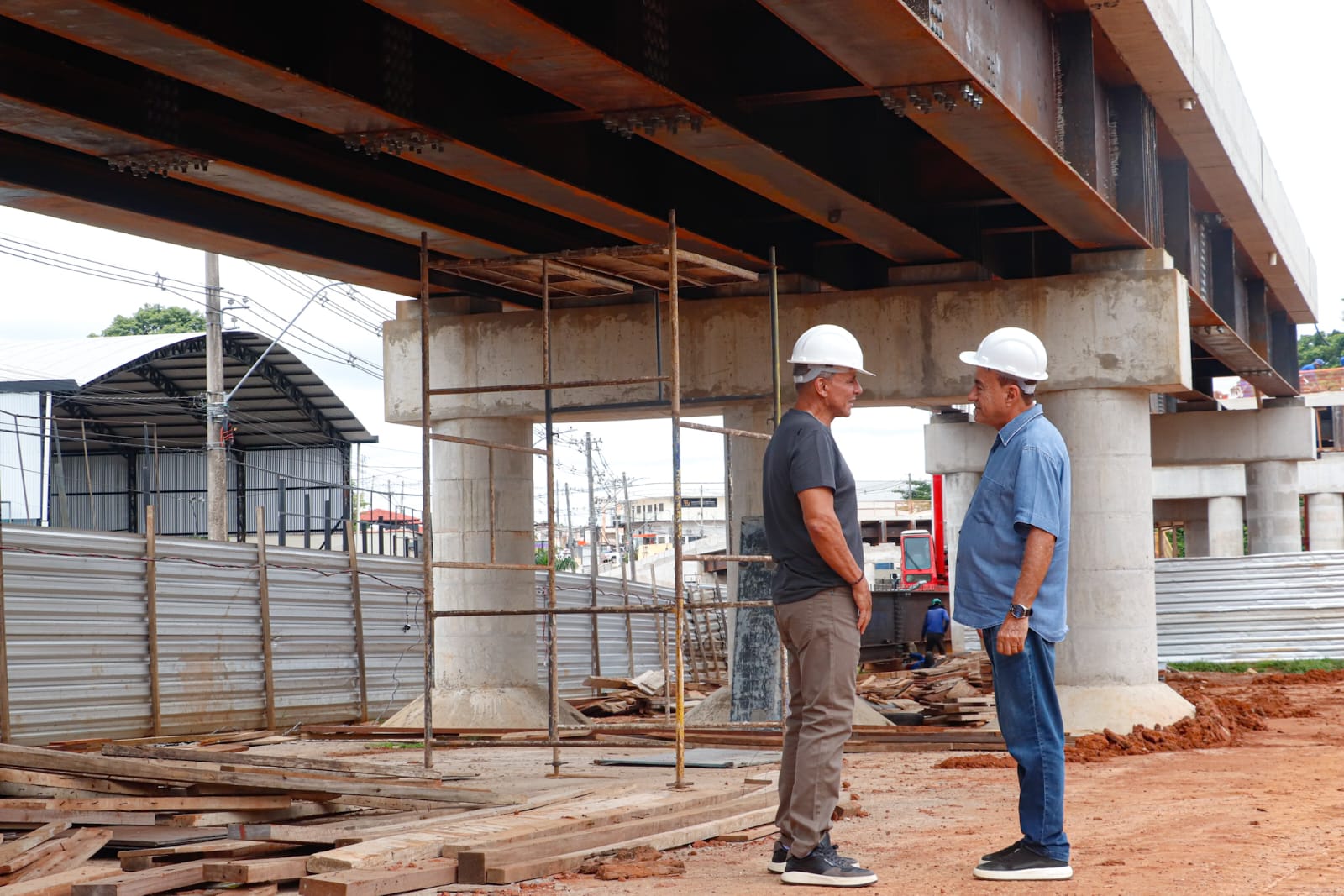Durante a visita, o prefeito Tião Bocalom destacou a parceria com o senador Márcio Bittar, responsável pela emenda parlamentar que garantiu R$ 25 milhões do valor total destinado ao elevado.
