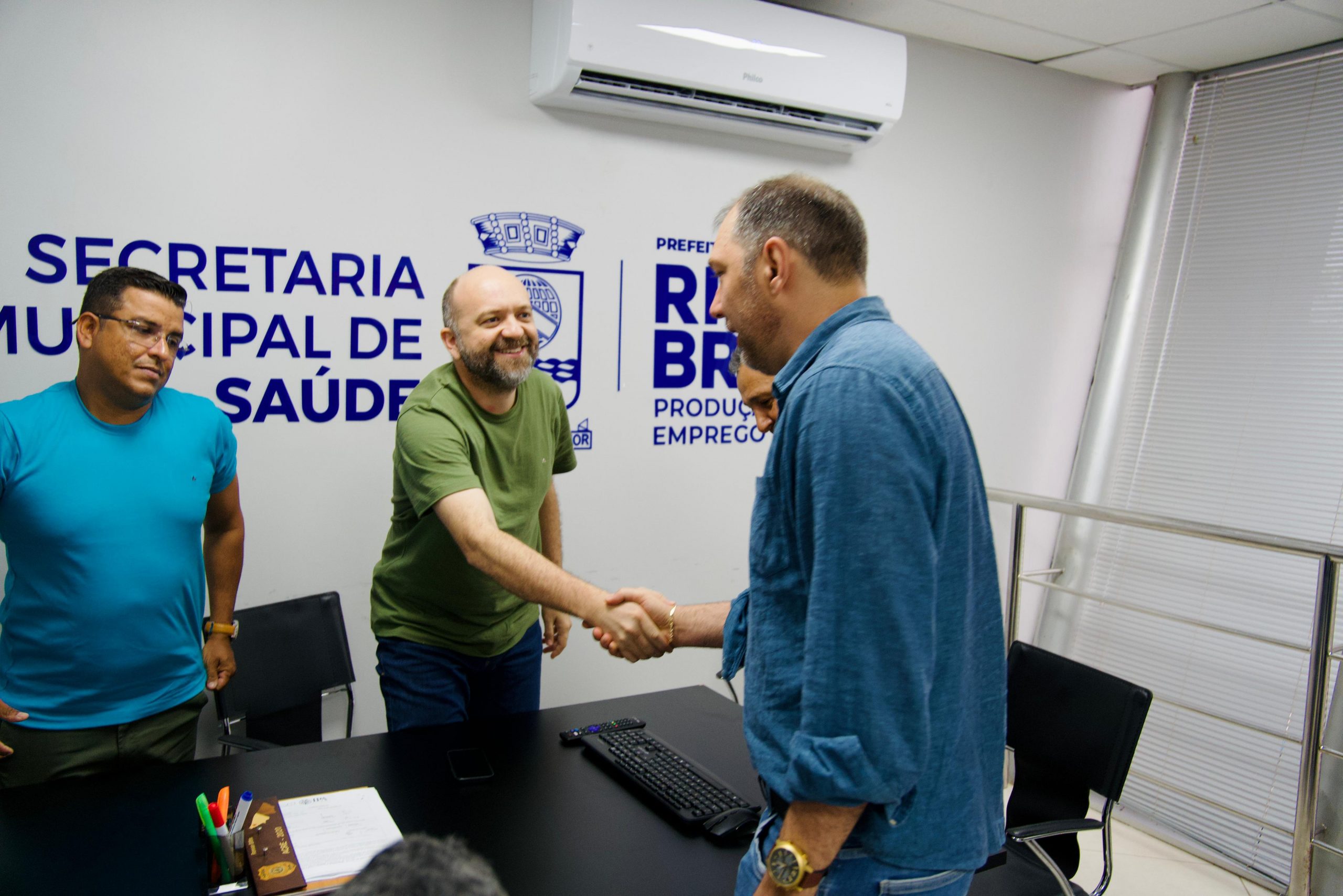 O encontro aconteceu no gabinete do secretário de Articulação Institucional, Rennan Biths, e contou com a presença do presidente da Câmara de vereadores, Joabe Lira, do vereador Aiache e do presidente do Sinttpac, Antônio Neto da Silva.