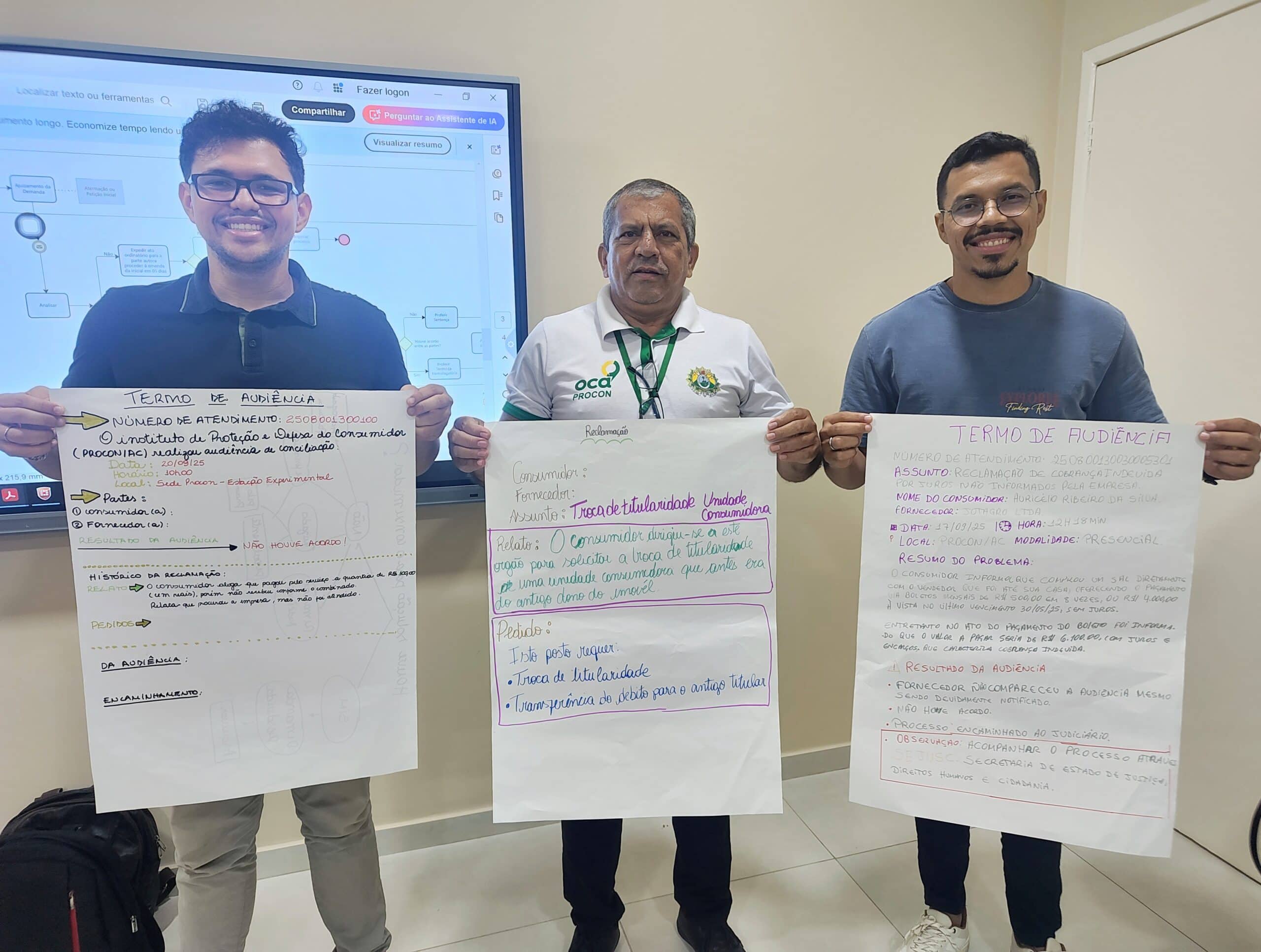 Também foram apresentados exemplos práticos de simplificação de termos técnicos e foi discutida a necessidade de capacitar equipes para atender de forma humanizada e clara os consumidores, conforme relata o supervisor de atendimento do Procon na OCA, Aminadabe Soares.