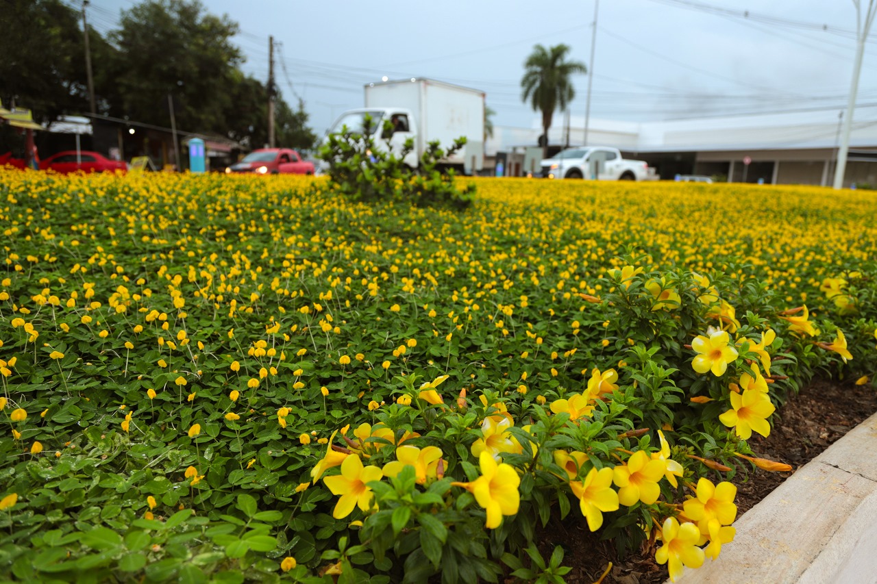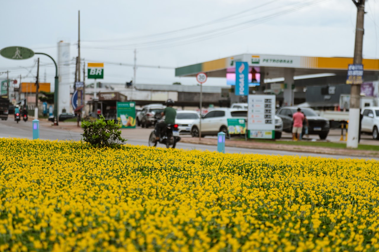 As ruas têm se tornado uma verdadeira tela de cores e beleza, sobretudo canteiros e rotatórias das principais vias da cidade. (Foto: Val Fernandes/Secom)