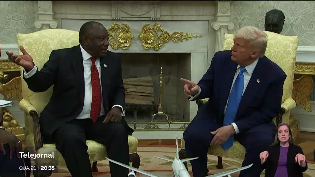 Donald Trump recebeu o presidente sul-africano na Casa Branca. O presidente americano confrontou o seu homólogo sul-africano com vídeos e artigos que sustentam as teses de Trump de genocídio branco na África do Sul.