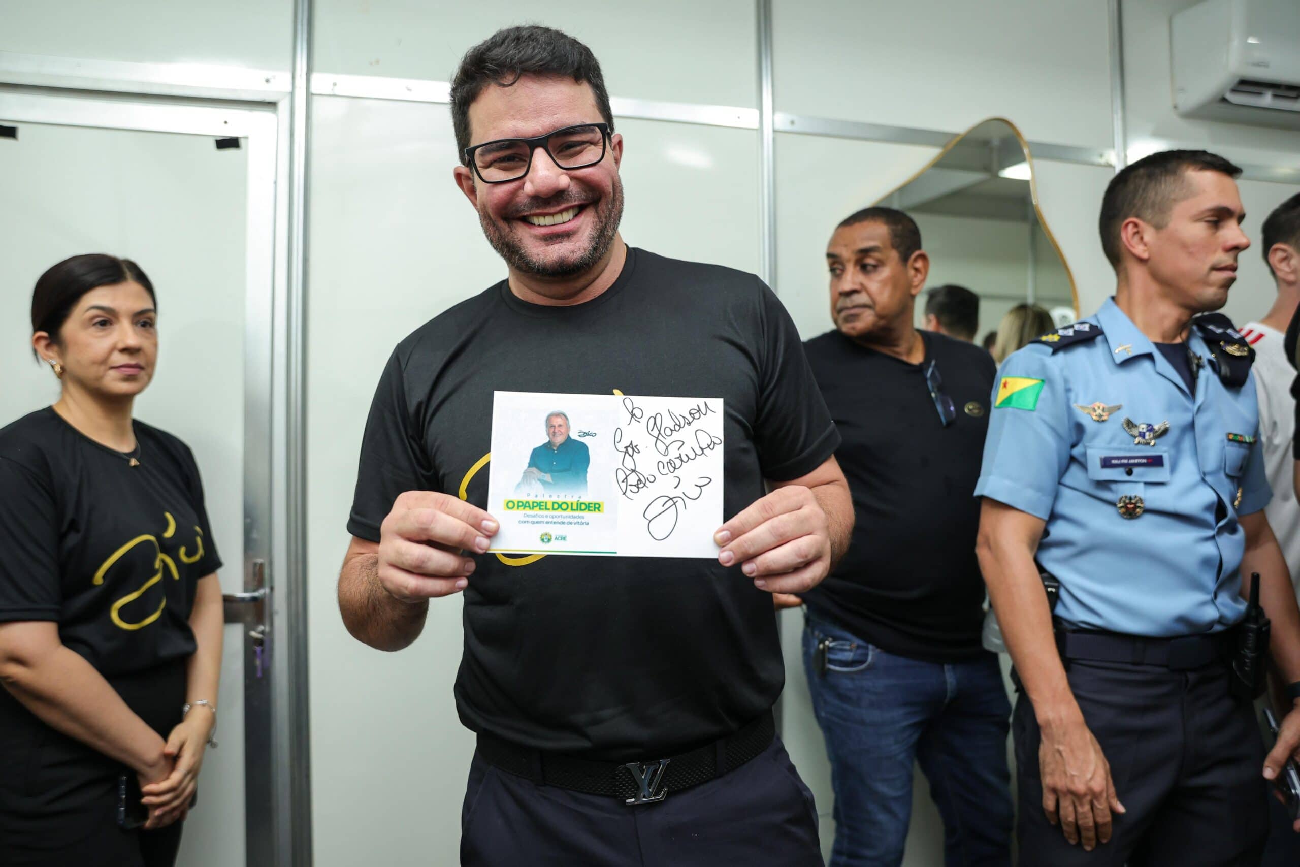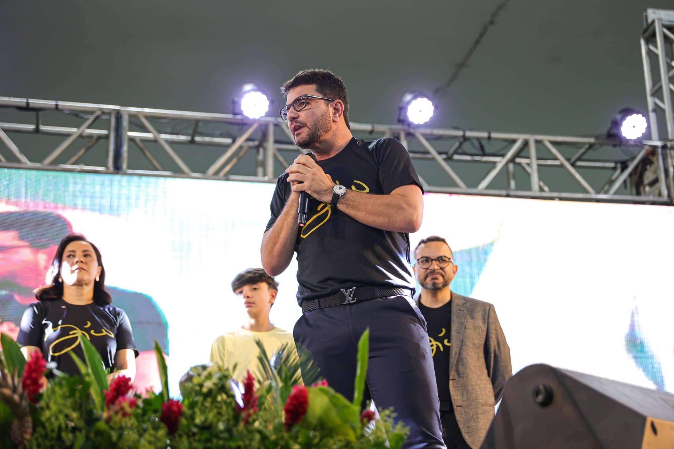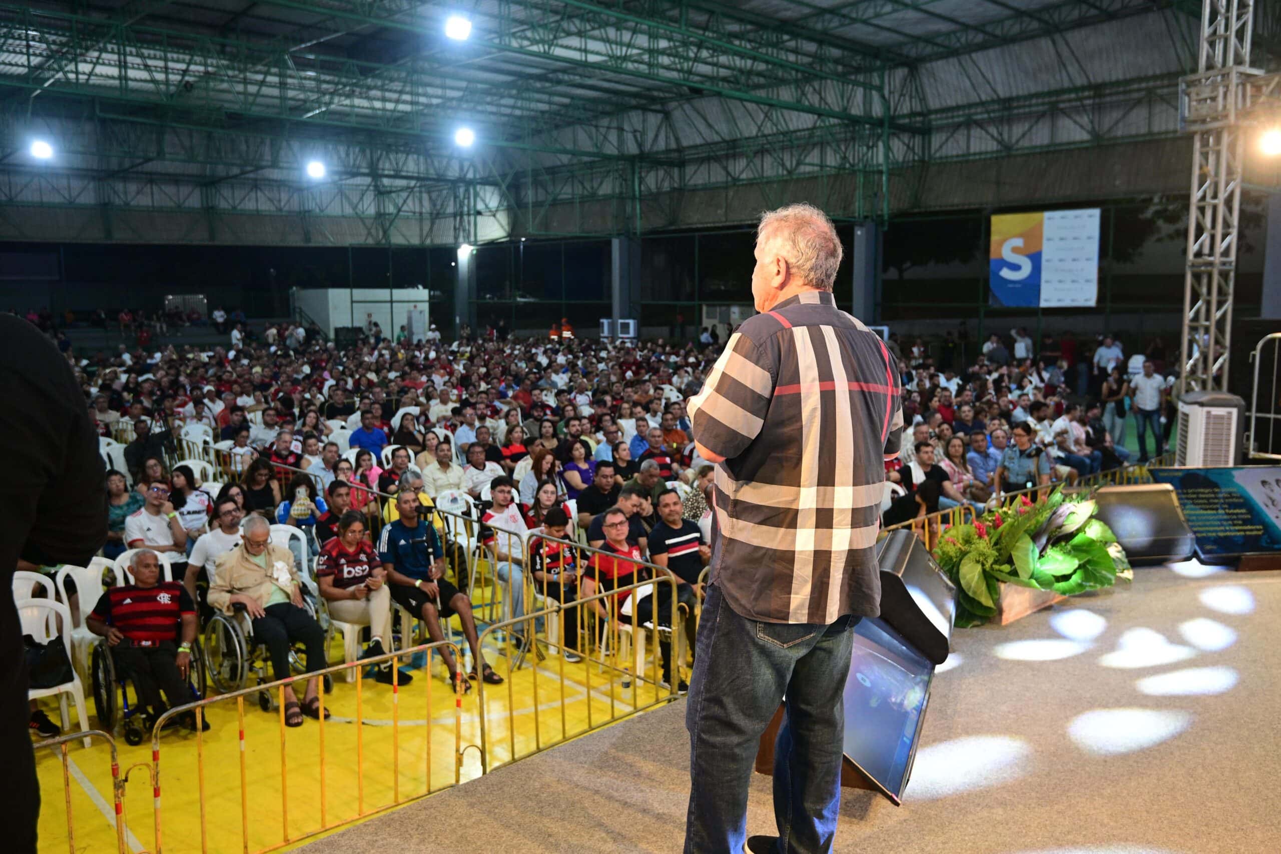 “Quero começar agradecendo a Deus e a todos que estão aqui presentes nesta palestra tão especial,” declarou o governador Gladson Camelí, ao abrir oficialmente o evento com o ídolo do futebol brasileiro, Zico. Vestindo uma camisa preta com o nome do craque estampado, Camelí destacou que aquele momento era de respeito e celebração.
