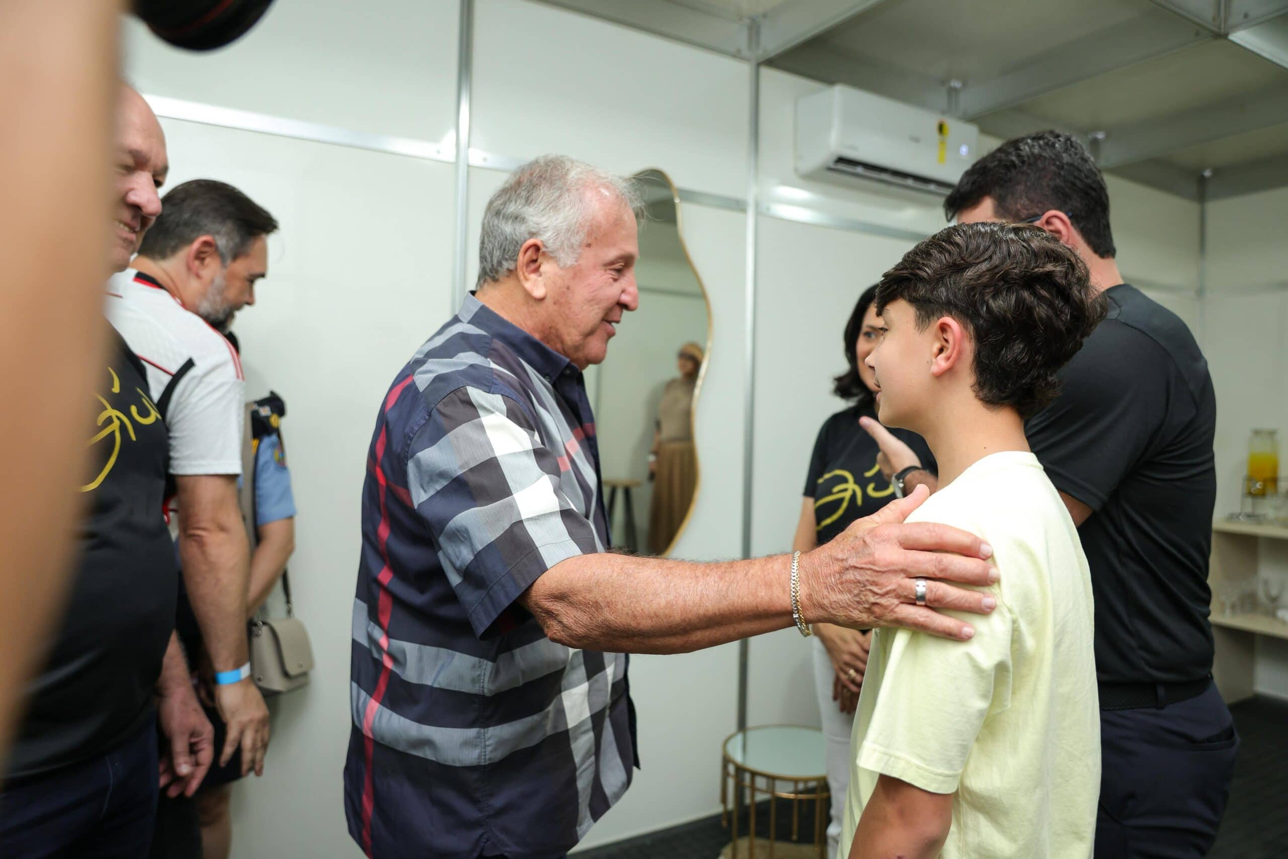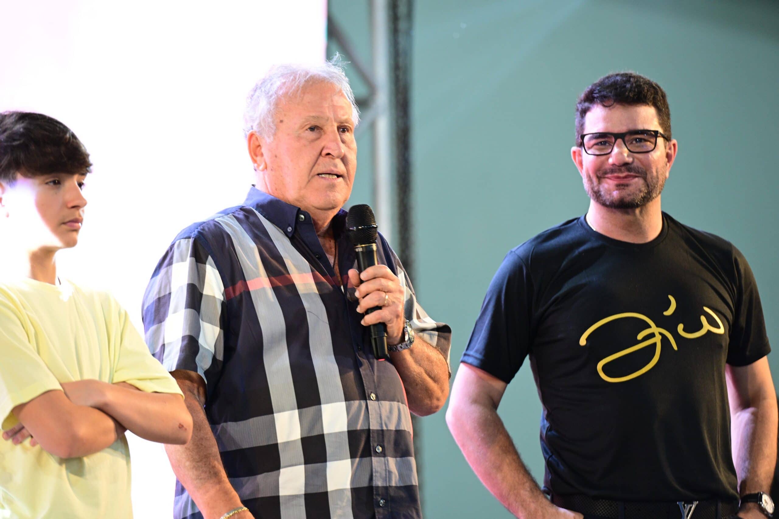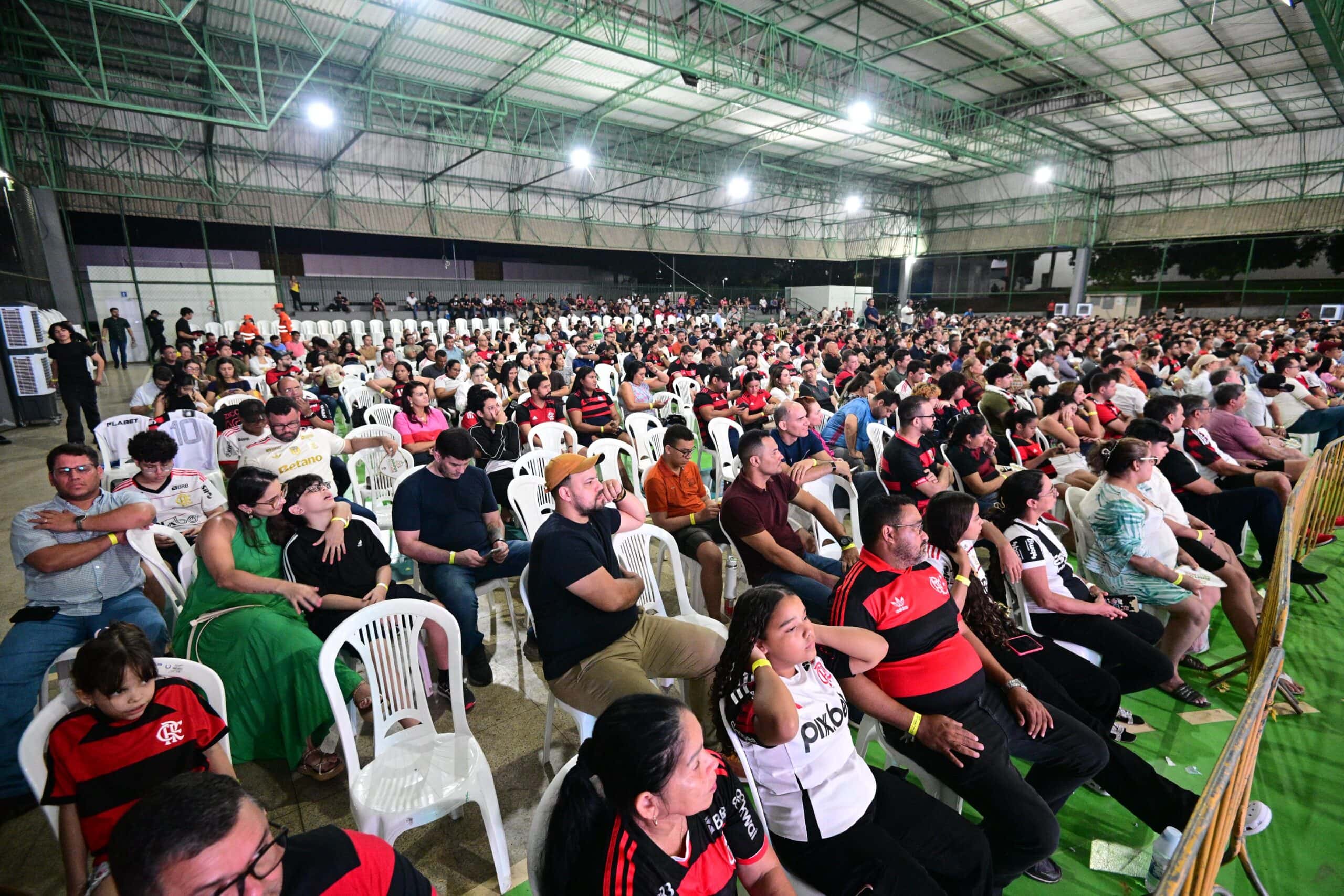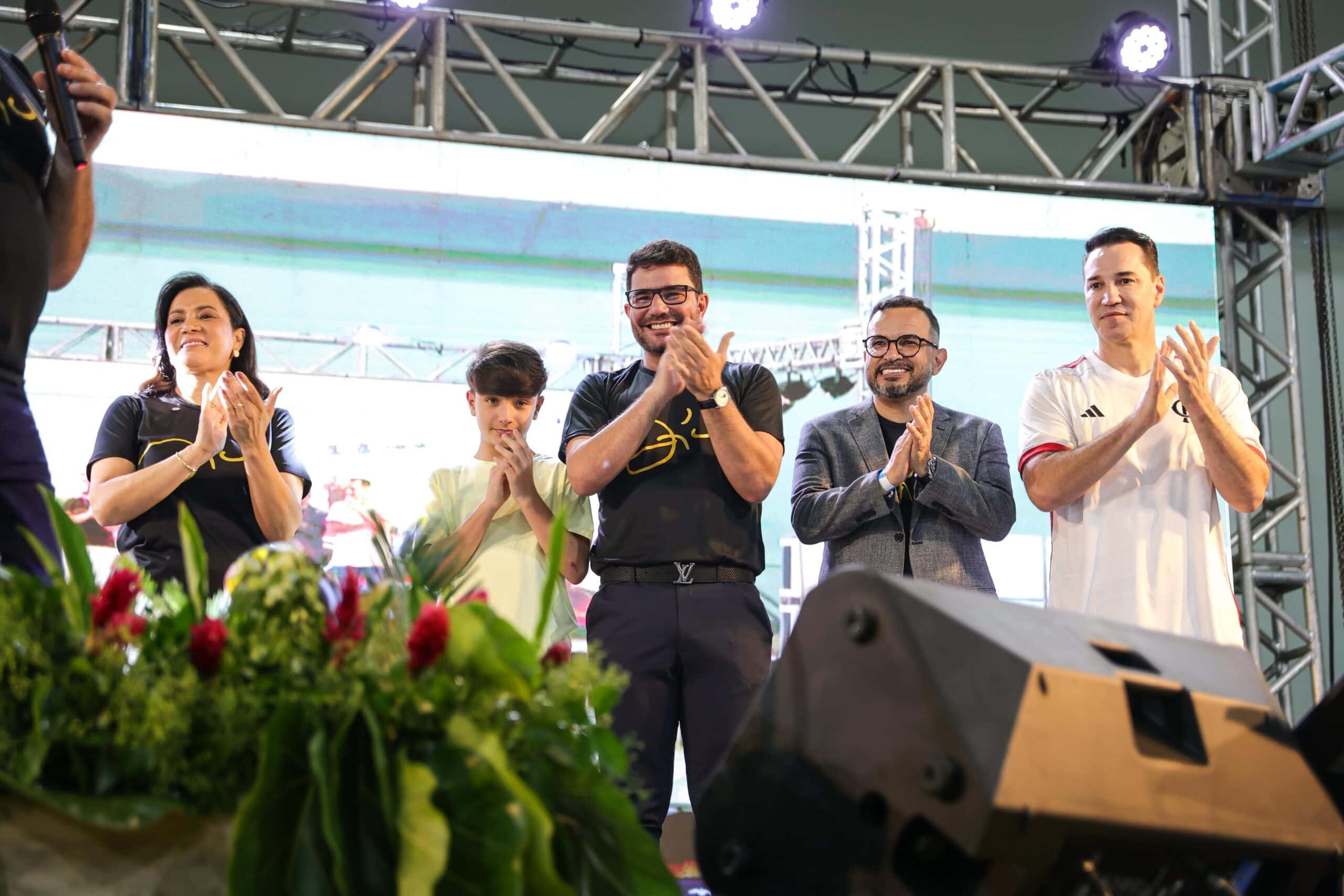 Em meio ao público, o governador fez questão de mencionar a presença de seu filho Guilherme, flamenguista como ele. “Quem aqui é flamenguista, pessoal?”, brincou, arrancando aplausos e sorrisos da plateia.