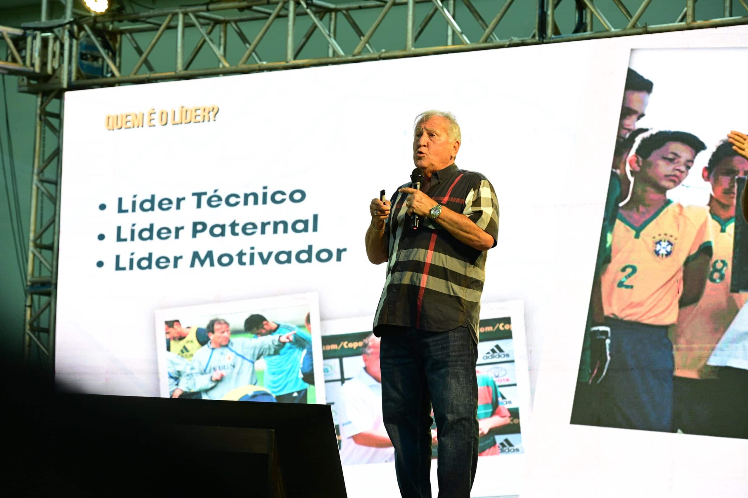 Sob o tema “O papel do líder: desafios e oportunidades com quem entende de vitória”, Zico compartilhou experiências marcantes de sua trajetória no futebol, abordando questões como as derrotas podem se tornar oportunidades, a importância de liderar pelo exemplo e os desafios de promover o coletivo em uma sociedade cada vez mais individualista.