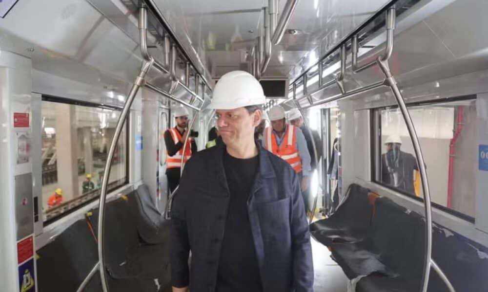 Governador Tarcísio de Freitas visita trem da Linha 6-Laranja — Foto: Pablo Jacob/Governo do Estado de SP