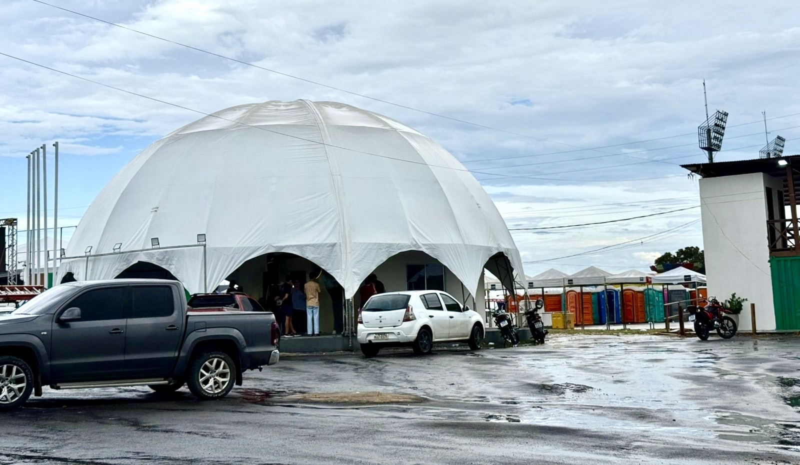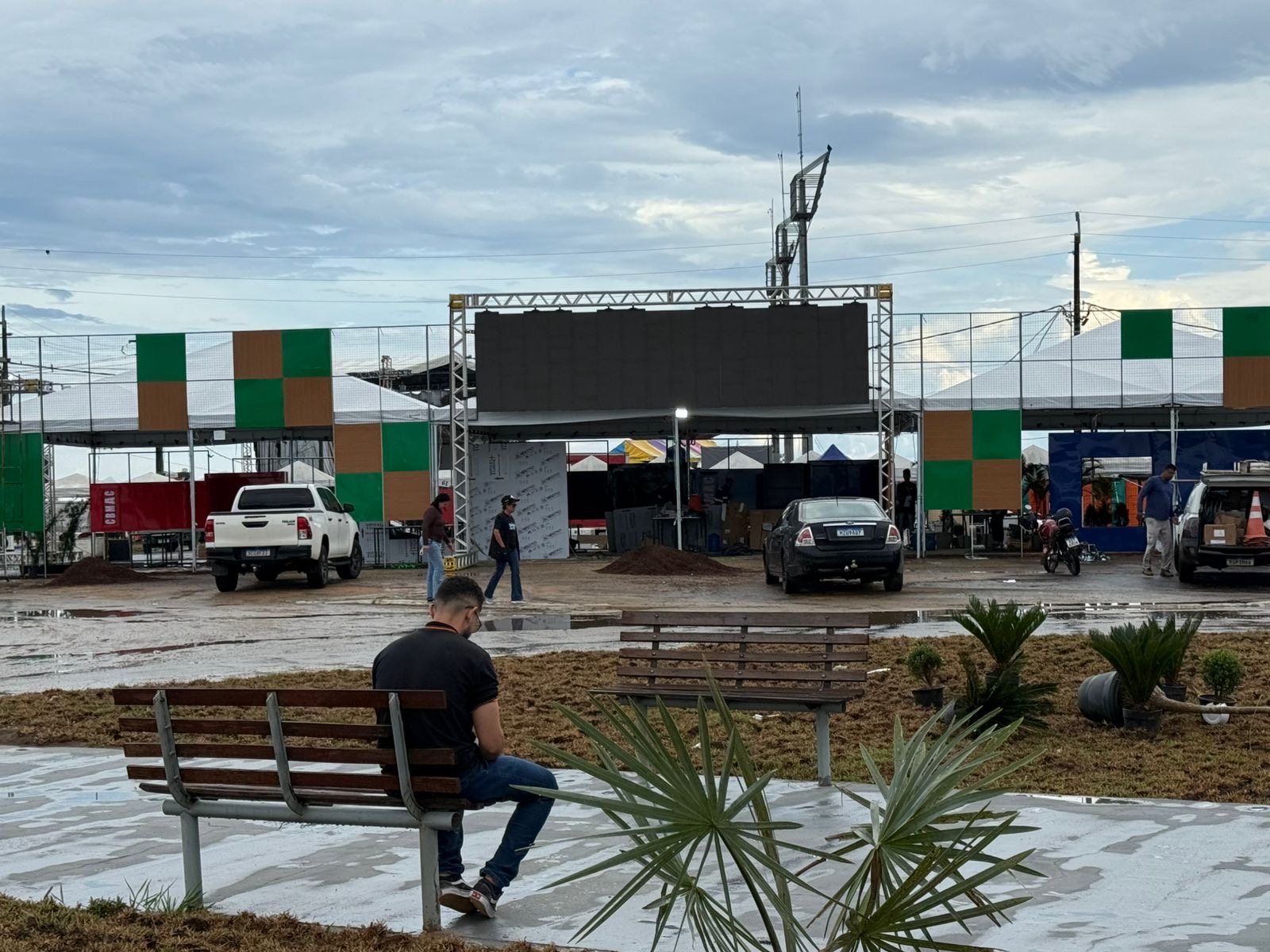 Mesmo com a forte chuva que caiu sobre a cidade na manhã desta segunda-feira (30), as equipes não interromperam as atividades e mantiveram o ritmo para entregar o espaço pronto nas próximas horas.