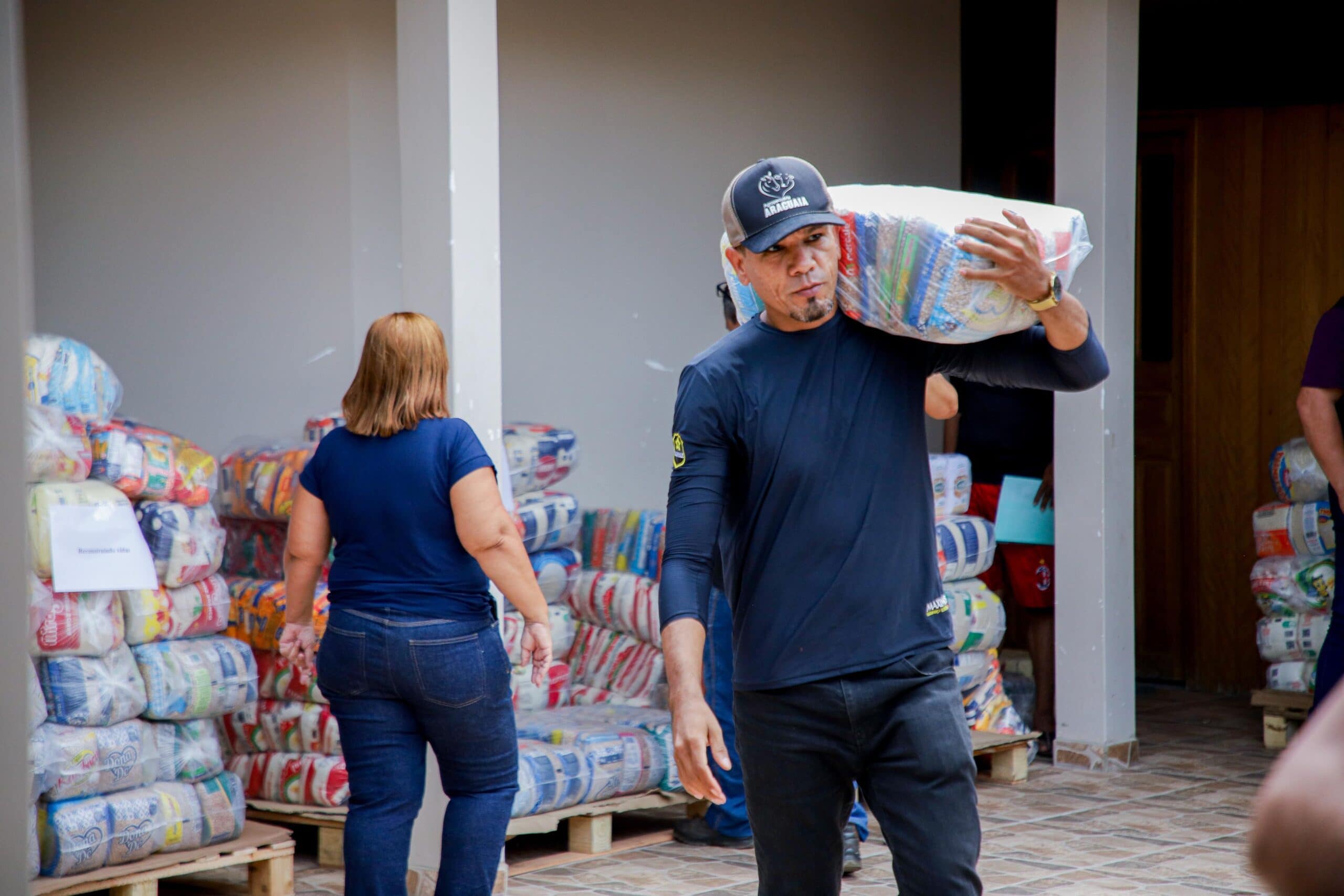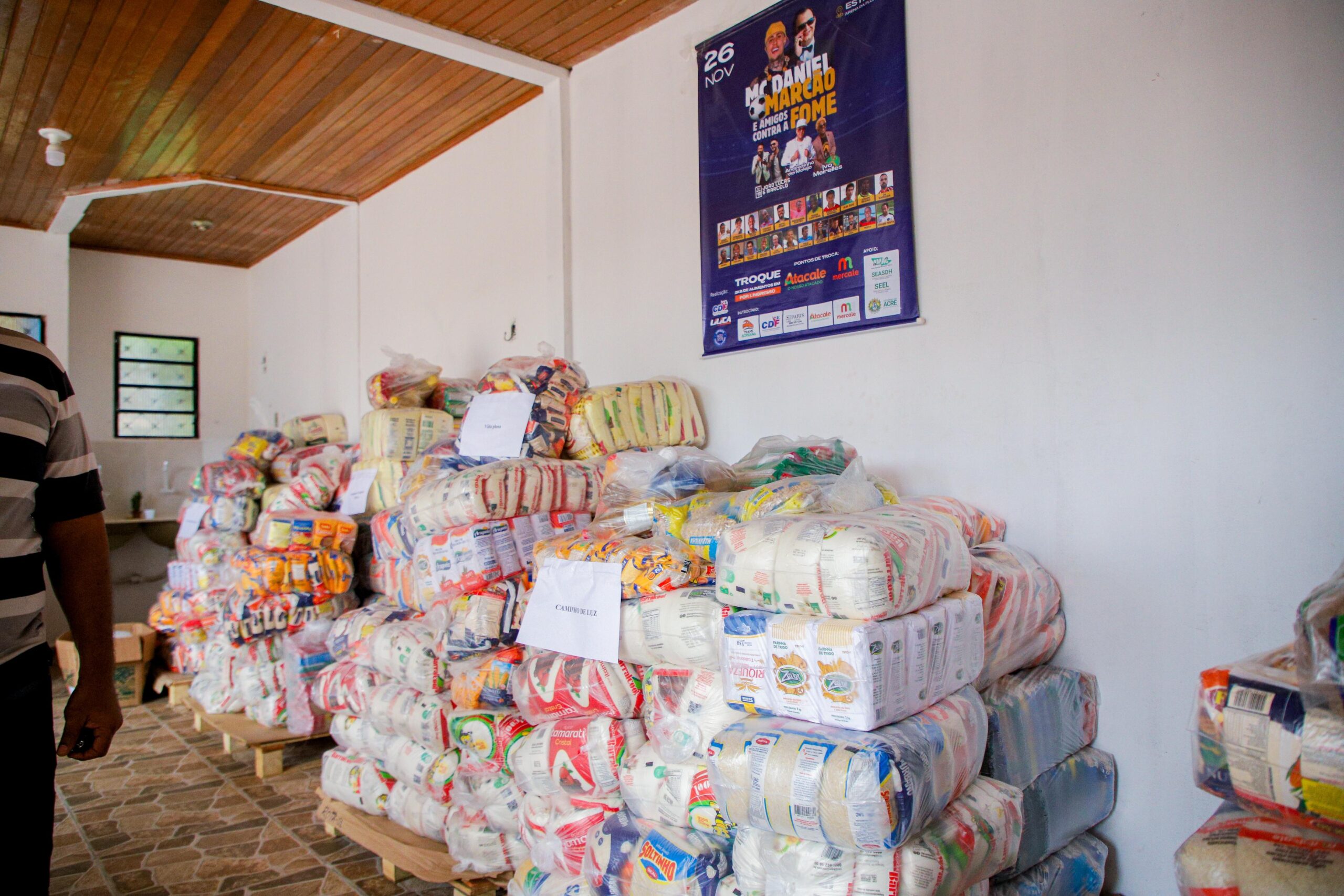 Os alimentos oriundos da ação Marcão e Amigos Contra a Fome, realizada no dia 26 de novembro no estádio Arena da Floresta, foram divididos em partes iguais, totalizando 874 quilos de alimento para cada um dos locais beneficiados.