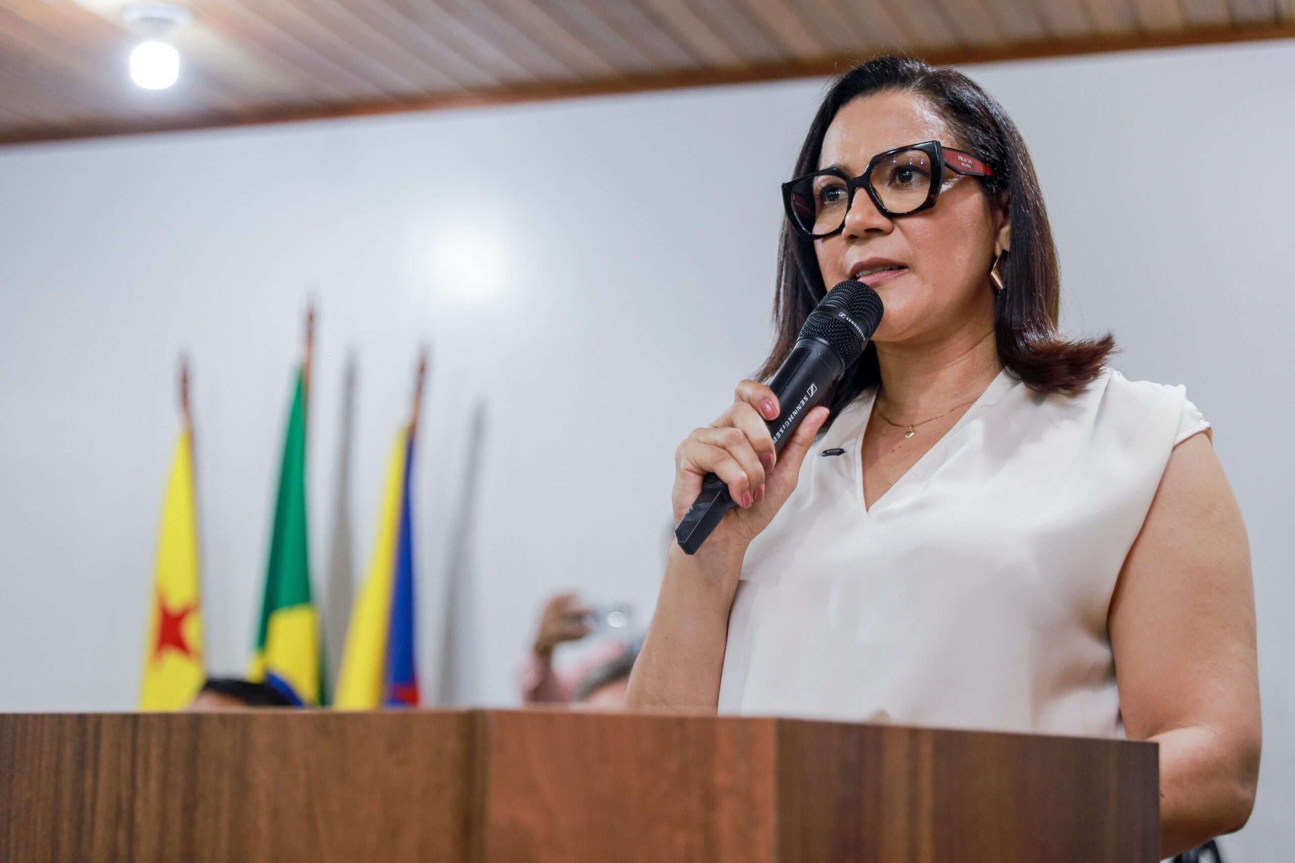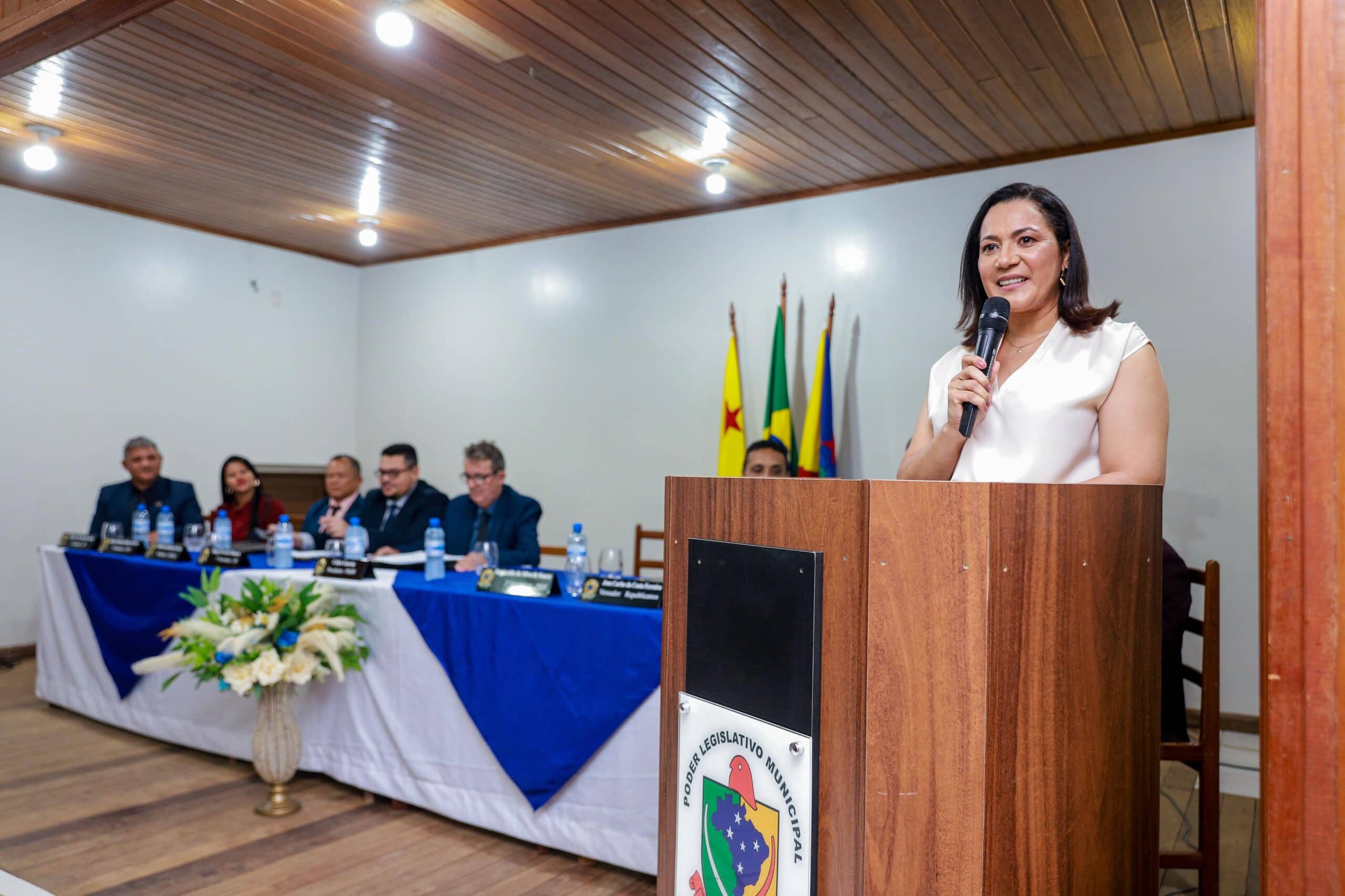 O auditório da Escola Anthero Soares estava lotado, e a emoção tomou conta do ambiente durante a homenagem: “Sou grata pela oportunidade de, como vice-governadora deste estado, buscar honrar os compromissos assumidos ao lado do governador Gladson Camelí”, declarou.
