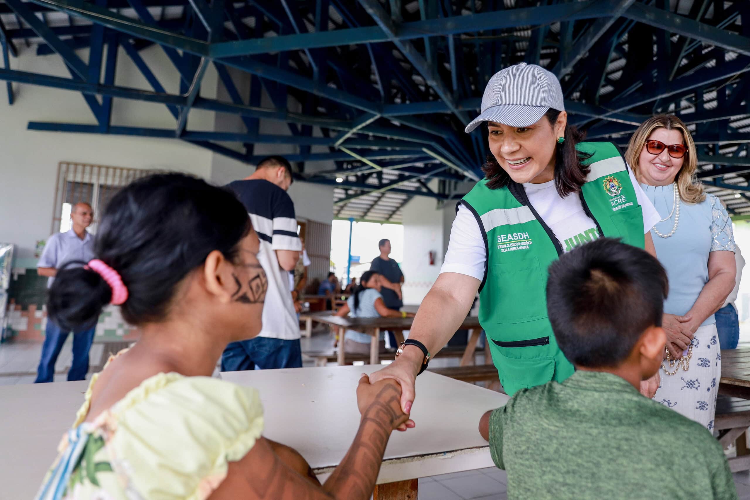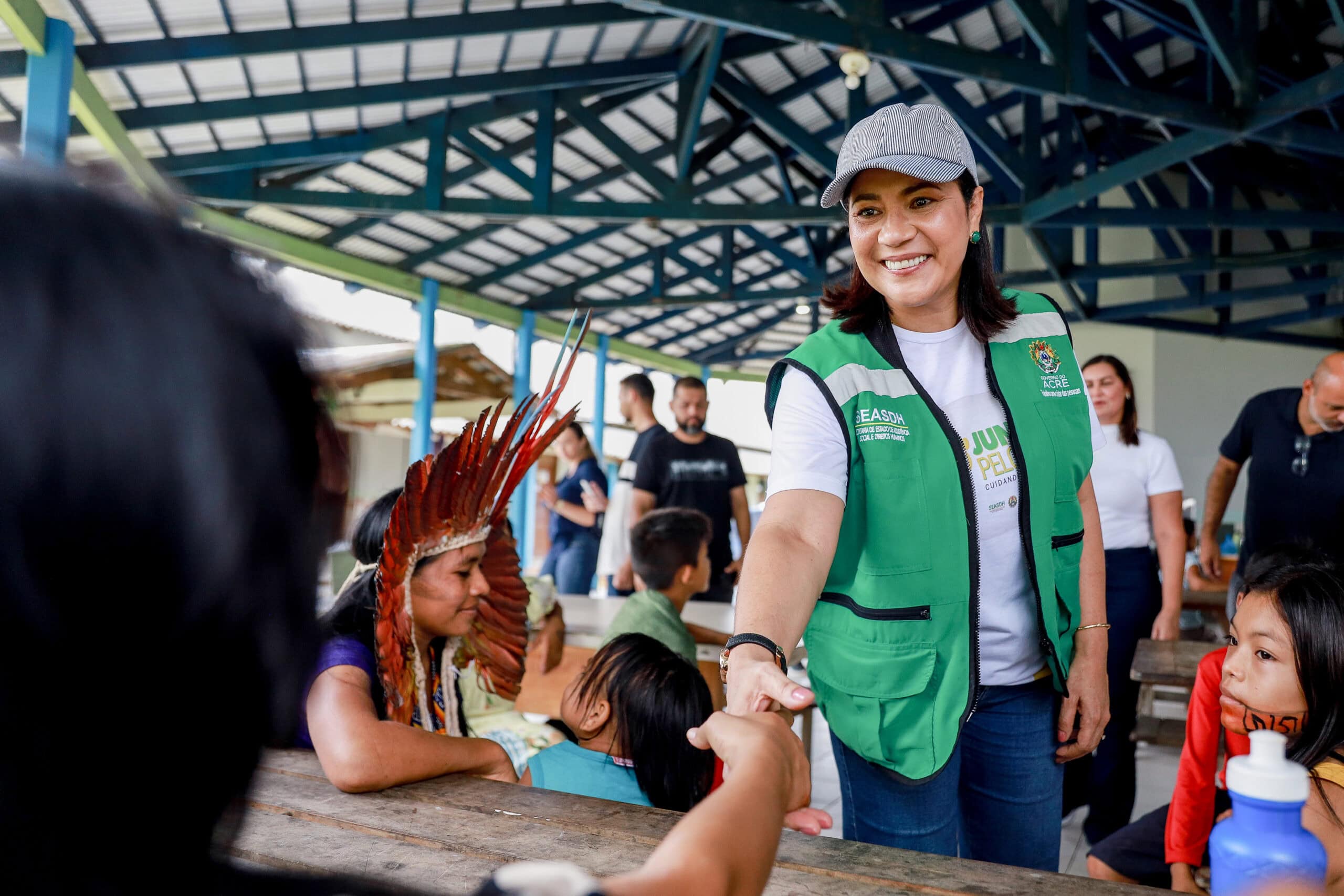 Na ocasião, Mailza Assis, que também é titular da Secretaria de Estado de Assistência Social e Direitos Humanos (SEASDH), foi recebida por cerca 15 famílias indígenas com cantos e músicas tradicionais, e reforçou o compromisso do governo do Acre em minimizar os impactos e oferecer apoio às famílias.